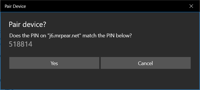 If the devices are not paired on bluetooth level you can use the Pair selected button to initiate bluetooth pairing. You will be prompted with Add a device notification and when the notification is clicked the new dialog is shown to confirm the PIN (automatically generated) on both devices. Pairing must be confirmed both on the computer and also on an Android device as you can see on the last screen. All the examples apply to Windows 11.